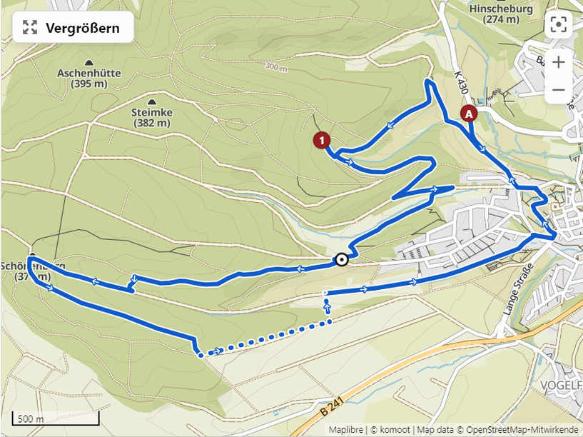 Achtung! Für den Bereich zwischen Borken- und Schönenberg-Hütte gilt: Während der Vegetationsperiode sind nur die Stecklersbeeke und ihre Verlängerung sowie die alte Uslarer Straße begehbar – alle dazwischen in die Karte eingezeichneten weiteren Wege sind in den Wiederaufforstungsgebieten völlig zugewachsen und teilweise überhaupt nicht mehr erkennbar.